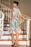 Sheath Off the Shoulder Green Sequins 1920s Dress With Tassels