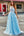 Pleated Blue Printed Corset Long Ball Dress with Slit