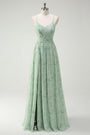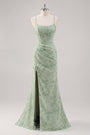 Dusty Sage Mermaid Floral Corset Ruched Long Prom Dress with Slit