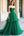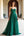A Line Dark Green Spaghetti Straps Long Prom Dress With Slit