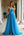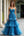 A Line Strapless Blue Tiered Organza Long Prom Dress