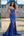 Royal Blue Mermaid Satin Spaghetti Straps Ruched Long Prom Dress with Slit
