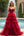 Sparkly Red Ball Gown Deep V Ruffles Tulle Long Prom Dress with Beaded