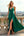 Green Satin Spaghetti Straps A-Line Ruched Long Prom Dress with Slit