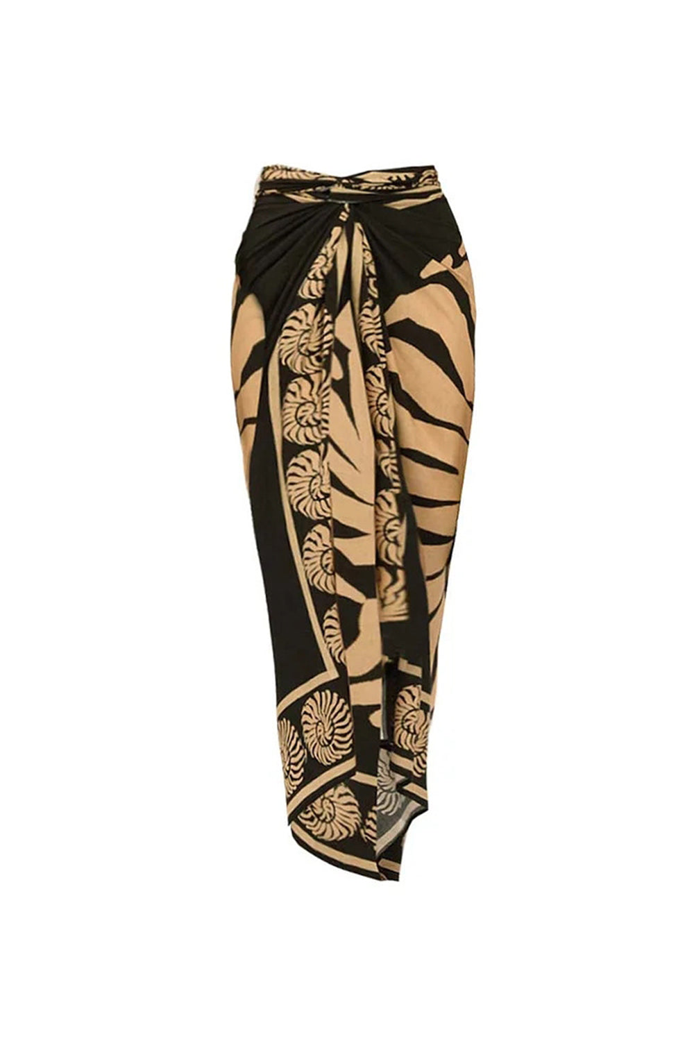 Black V Neck 2 Piece Swimsuit with Beach Skirt