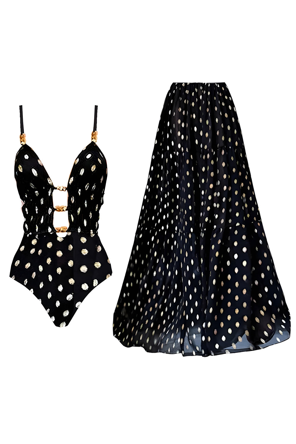 Black White Dot Cut Out Spaghetti Straps Swimsuit