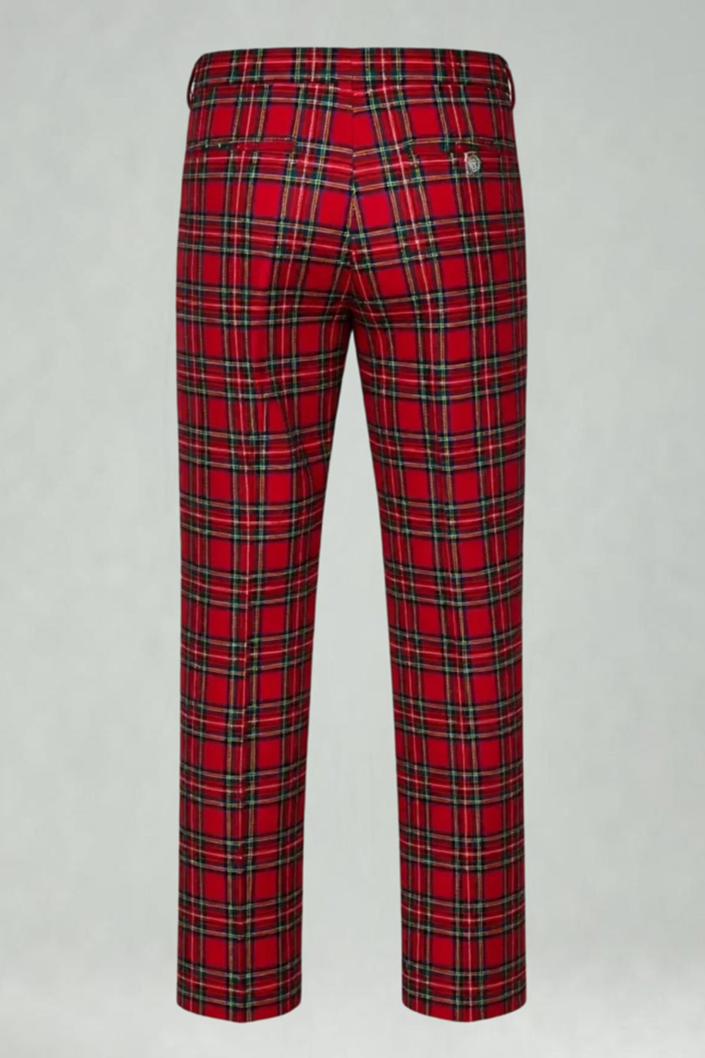 Red Black Plaid Notched Lapel 2 Piece Men's Prom Suits