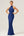 Blue Asymmetrical Cowl Neck Satin Bridesmaid Dress with Slit
