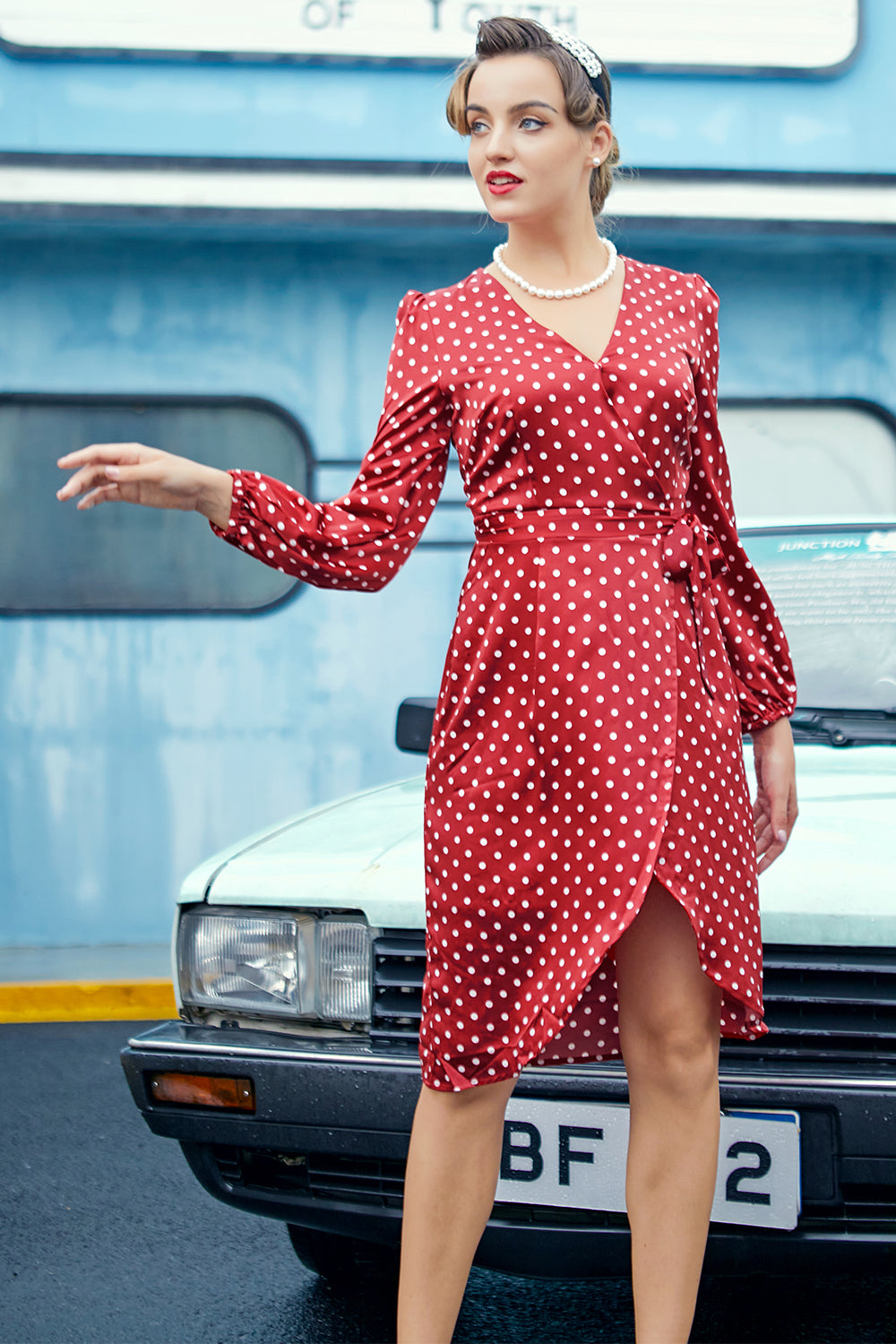Burgundy Polka Dots Casual Dress