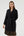 Black Long Notched Lapel Reversible Wool Coat with Belt