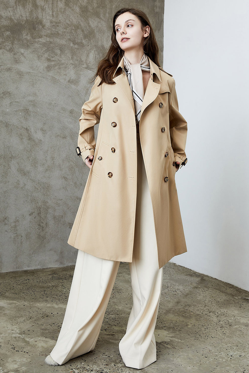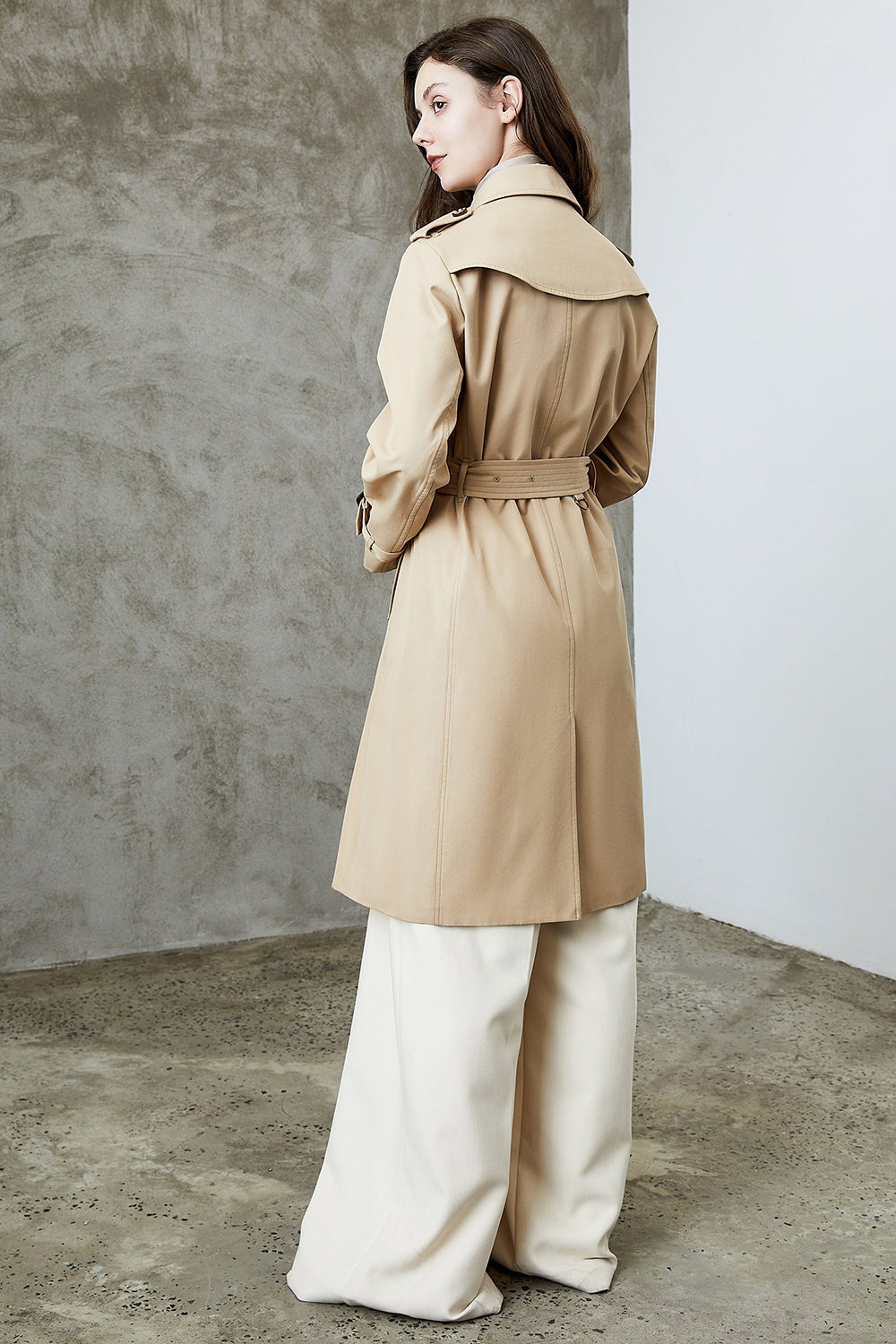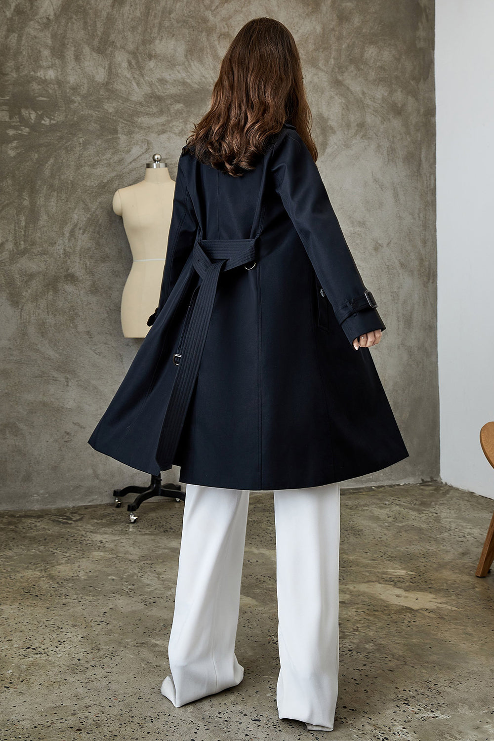 Black Lapel Double Breasted Trench Coat with Belt