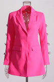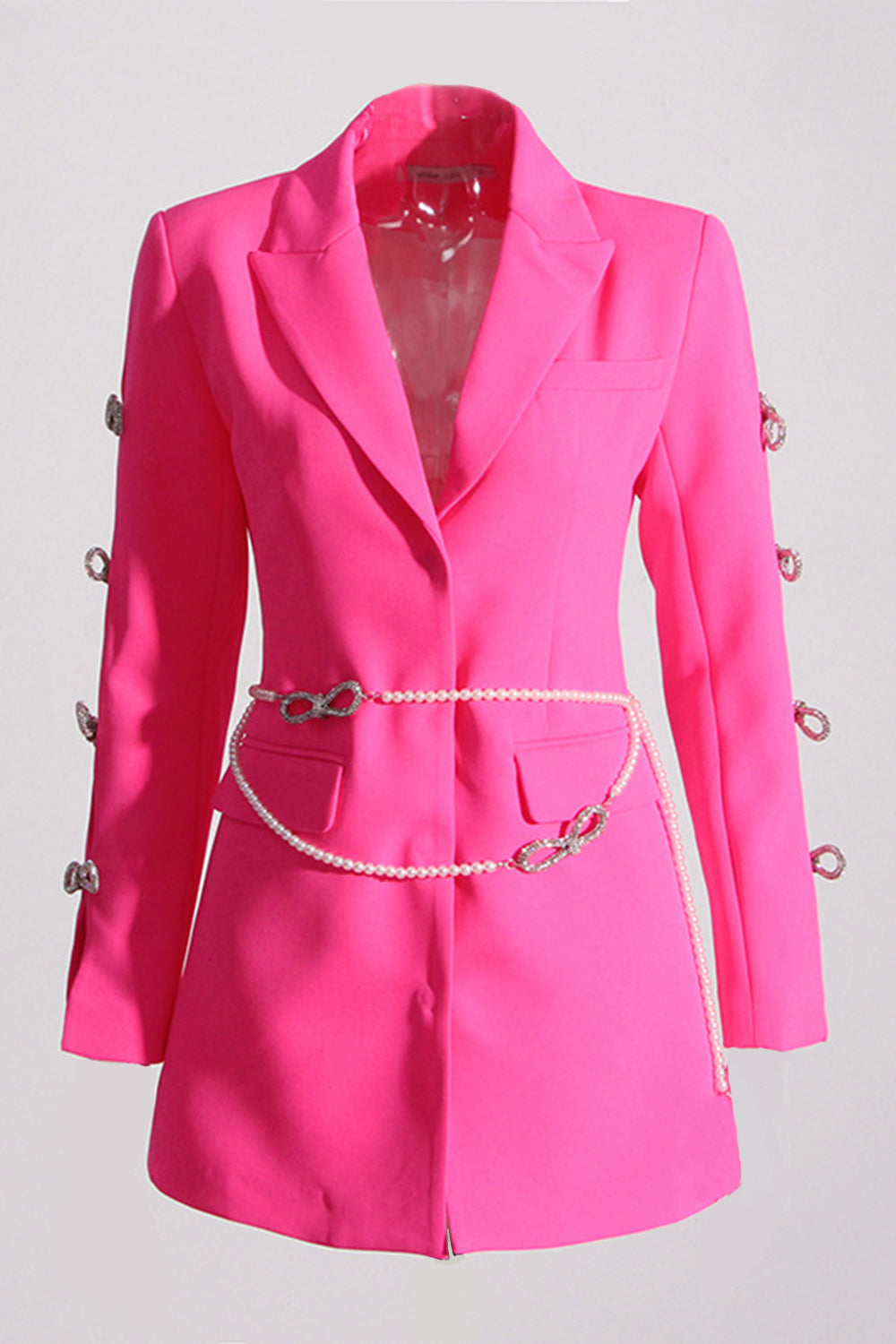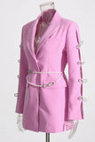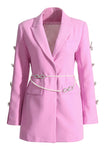 Pink Peak Lapel Chain Women Blazer with Beading