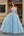 A-Line V-Neck Light Blue Tiered Long Ball Dress