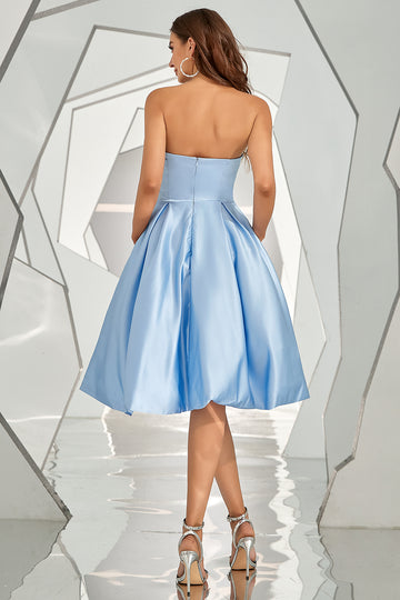 Sky Blue Strapless Cocktail Dress