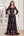 A Line Long Sleeves Floral Print Black Long Ball Dress