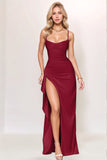 Simple Black Ruched Spaghetti Straps Long Formal Dress with Slit