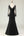 A Line Pleated Bow Spaghetti Straps Black Long Bridesmaid Dress