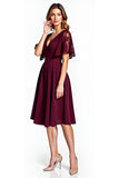 Cabernet Lace V-Neck Knee Length Mother of the Bride Dress with Short Sleeves