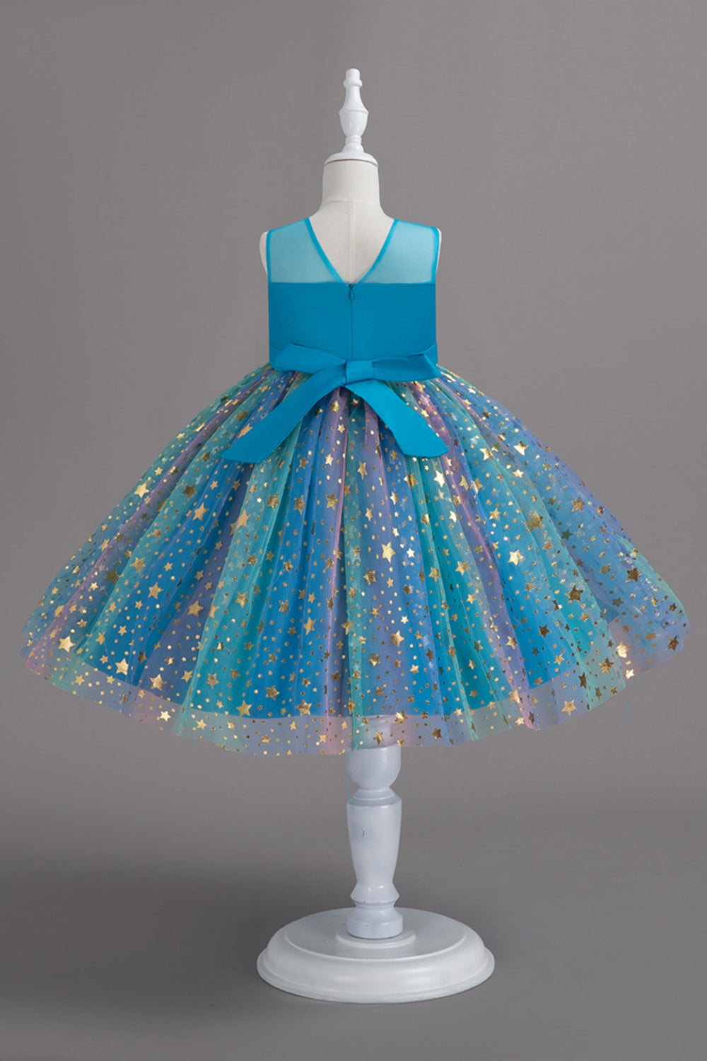 A Line Jewel Neck Blush Girls Party Dress with Bowknot