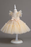 A Line Jewel Neck Red Girls Dress with Bowknot