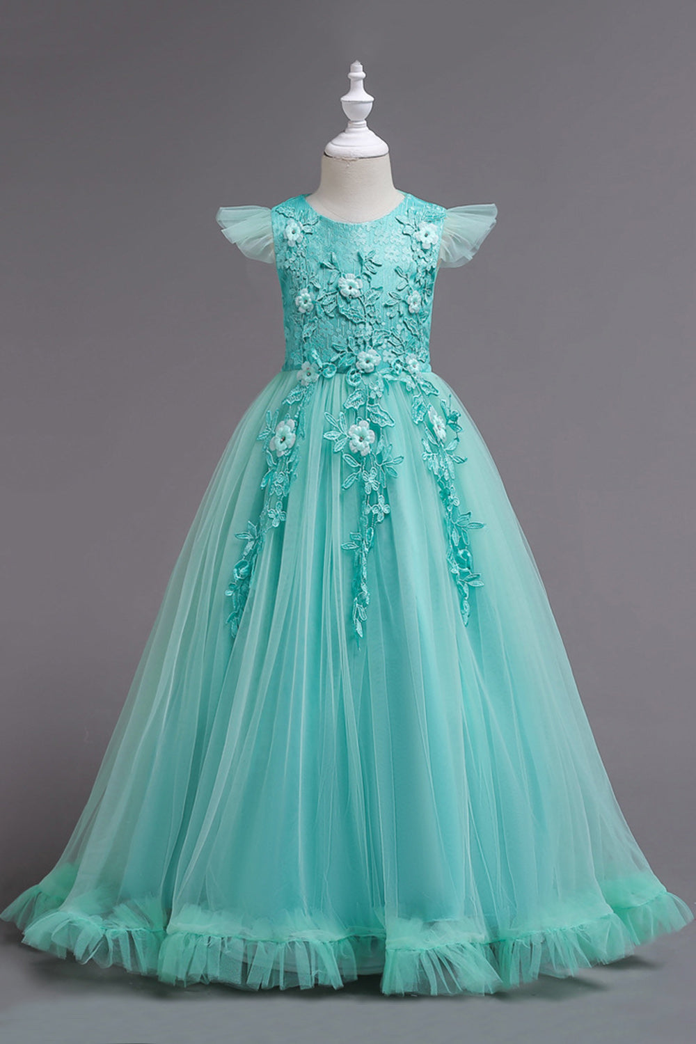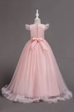 Tulle Boat Neck Yellow Girls Dresses with Appliques