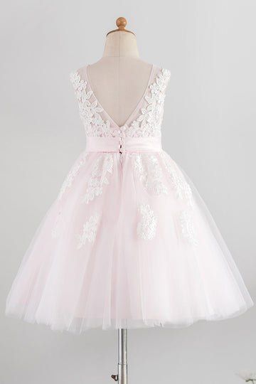 A Line Jewel Neck Pink Girls Party Dress with Appliques