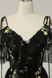 Black A-Line Cold Shoulder Embroidery Long Ball Dress with Slit
