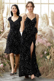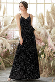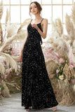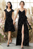Black Glittery V-Neck Split Long Formal Evening Dress