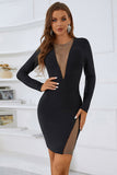 Fashion Sheath Jewel Black Party Cocktail Dress with Long Sleeves