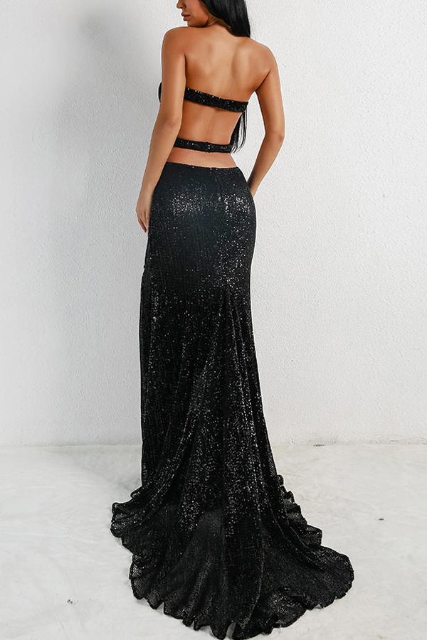 Sexy Black Mermaid Backless Sequin Ball Dress