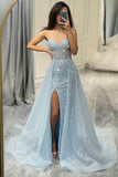 Corset Blue Strapless A Line Ball Dress with Slit