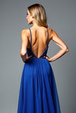 A Line Beaded Royal Blue Spaghetti Straps Wedding Guest Dress