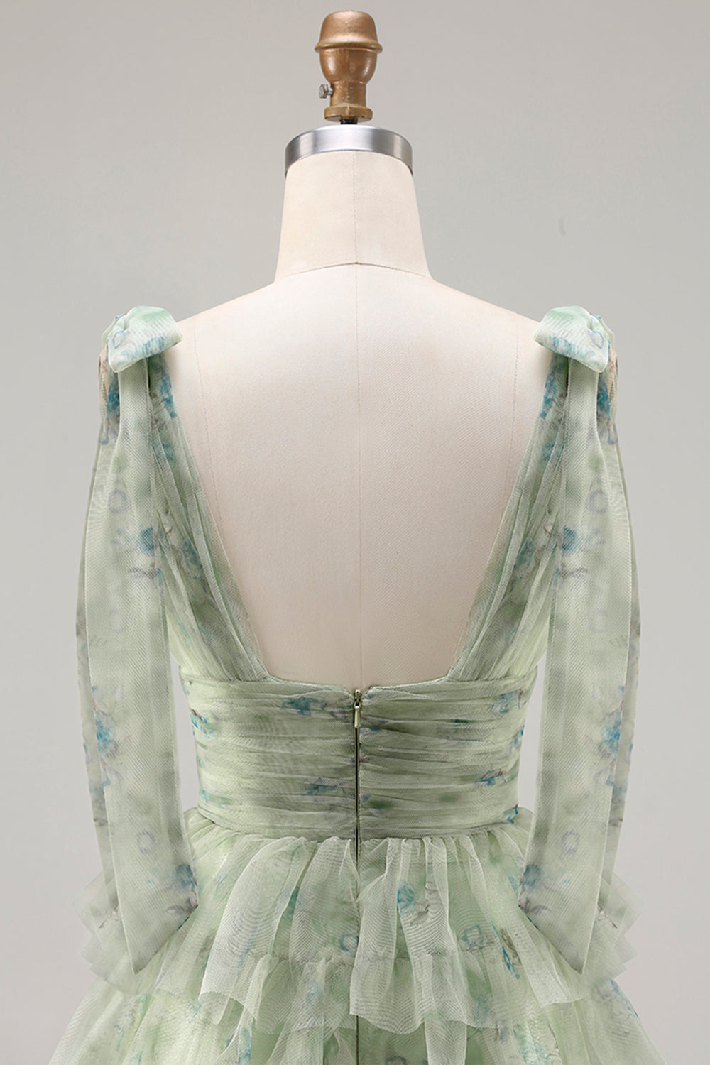 Green A-Line Tiered Ruffle Long Floral Ball Dress with Slit
