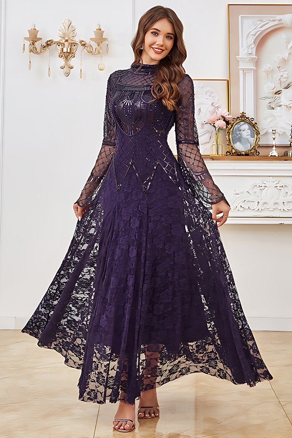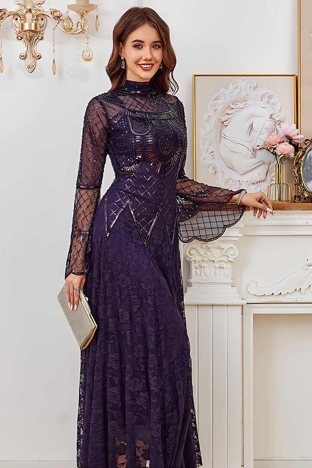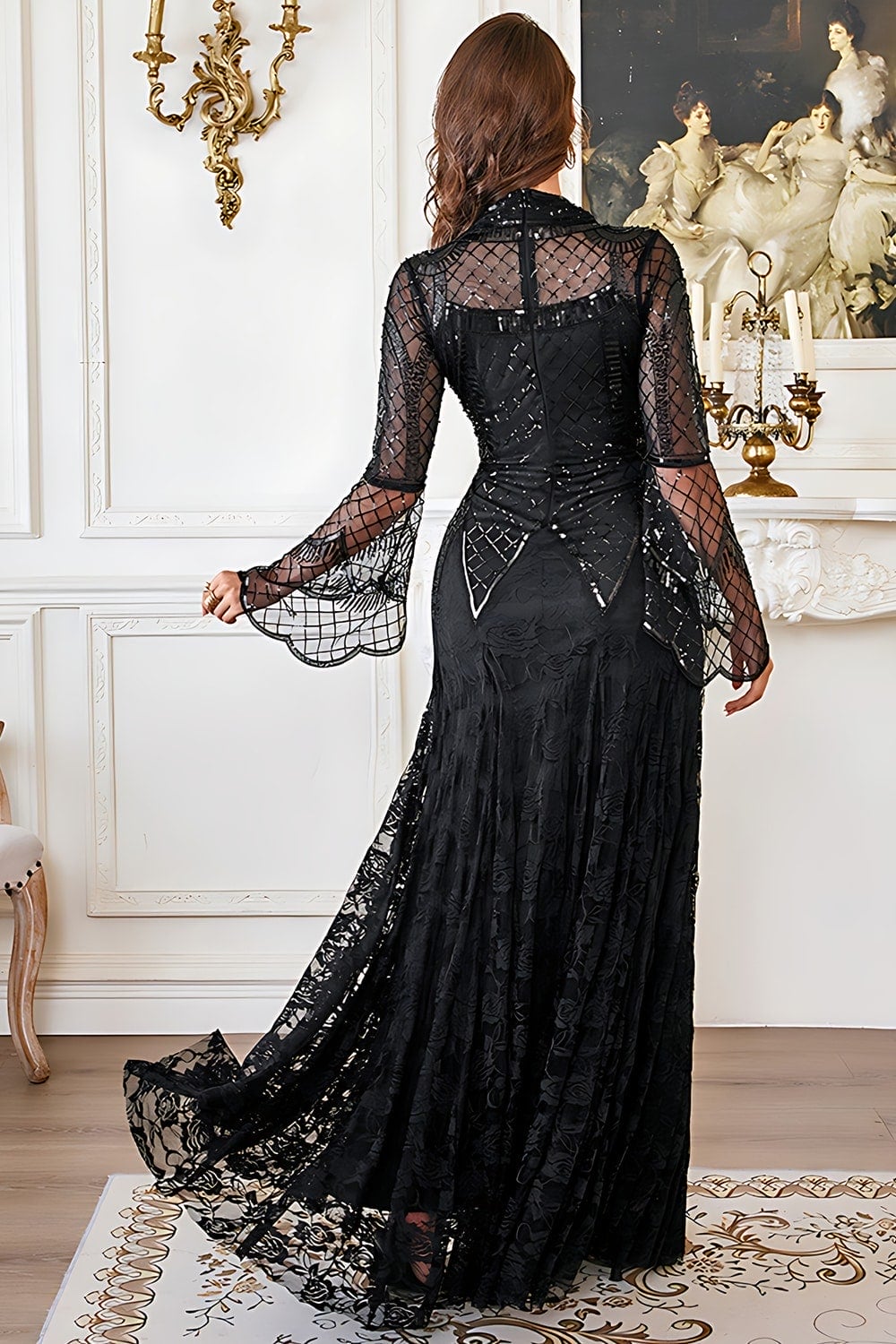 Lace Beaded Black Long Sleeve Mother of the Bride Dress