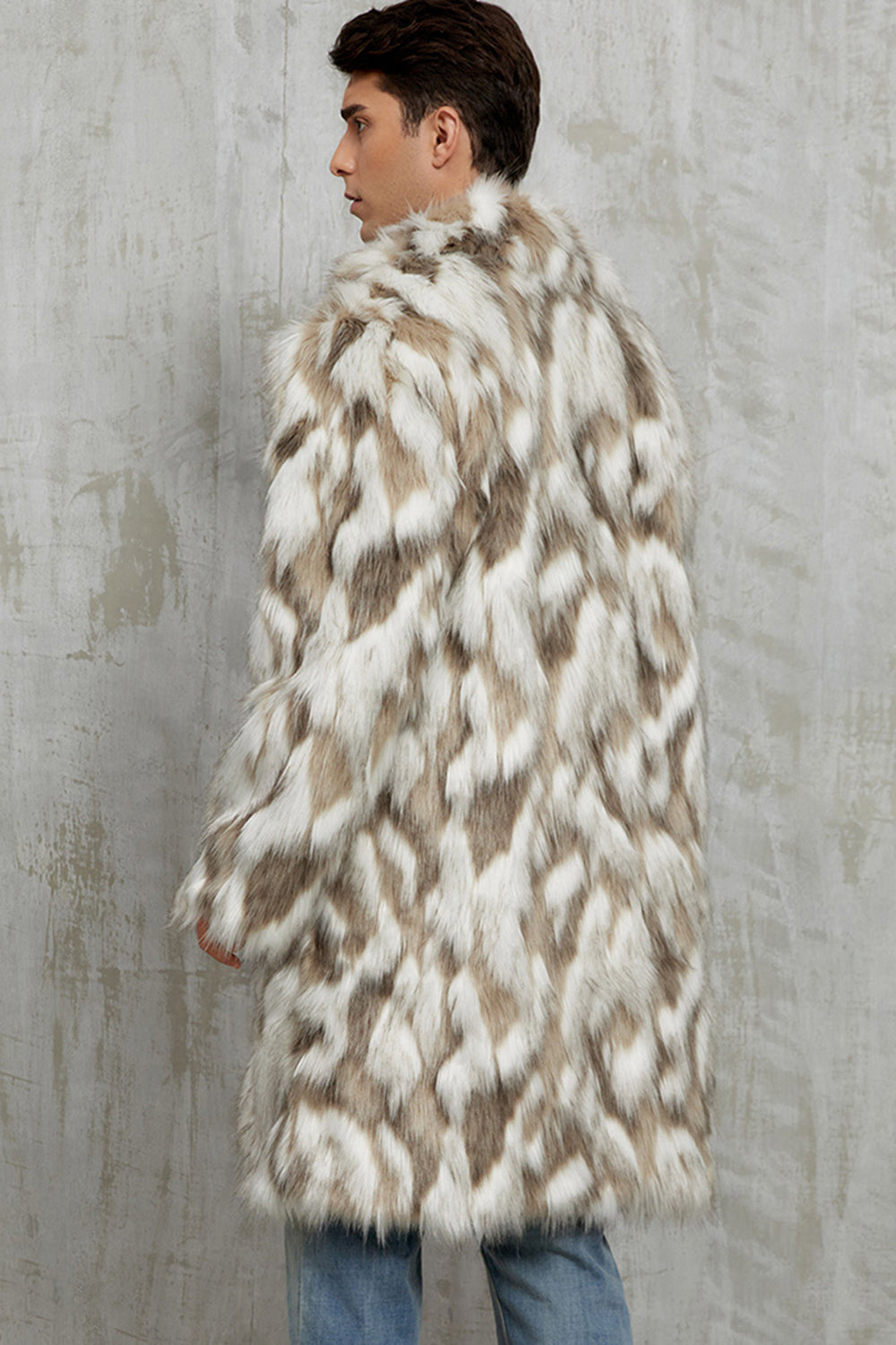 Grey Faux Fur Notched Lapel Long Winter Men's Coat