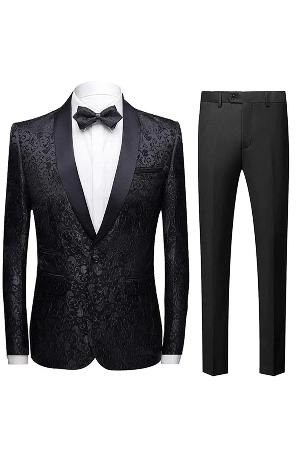 Men's 2-Piece Suits Jacquard Tuxedo Black