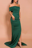Mermaid Green One Shoulder Dress with Slit