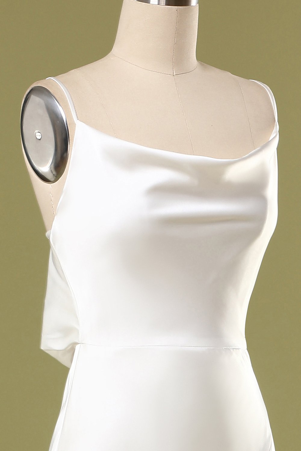 Perhaps you are going to prom, or a very nice high end Christmas party and want to make an impression, this white long dress is up to the challenge! Featuring spaghetti straps and a fun square neckline to put the focus in your bust area while still remaining demure and dainty the bodice of the dress then goes on to a cinched waist to minimize it and show off your figure while the long skirt covers your legs and feet as the slit shows a bit of skin for a fun touch of sexyness.