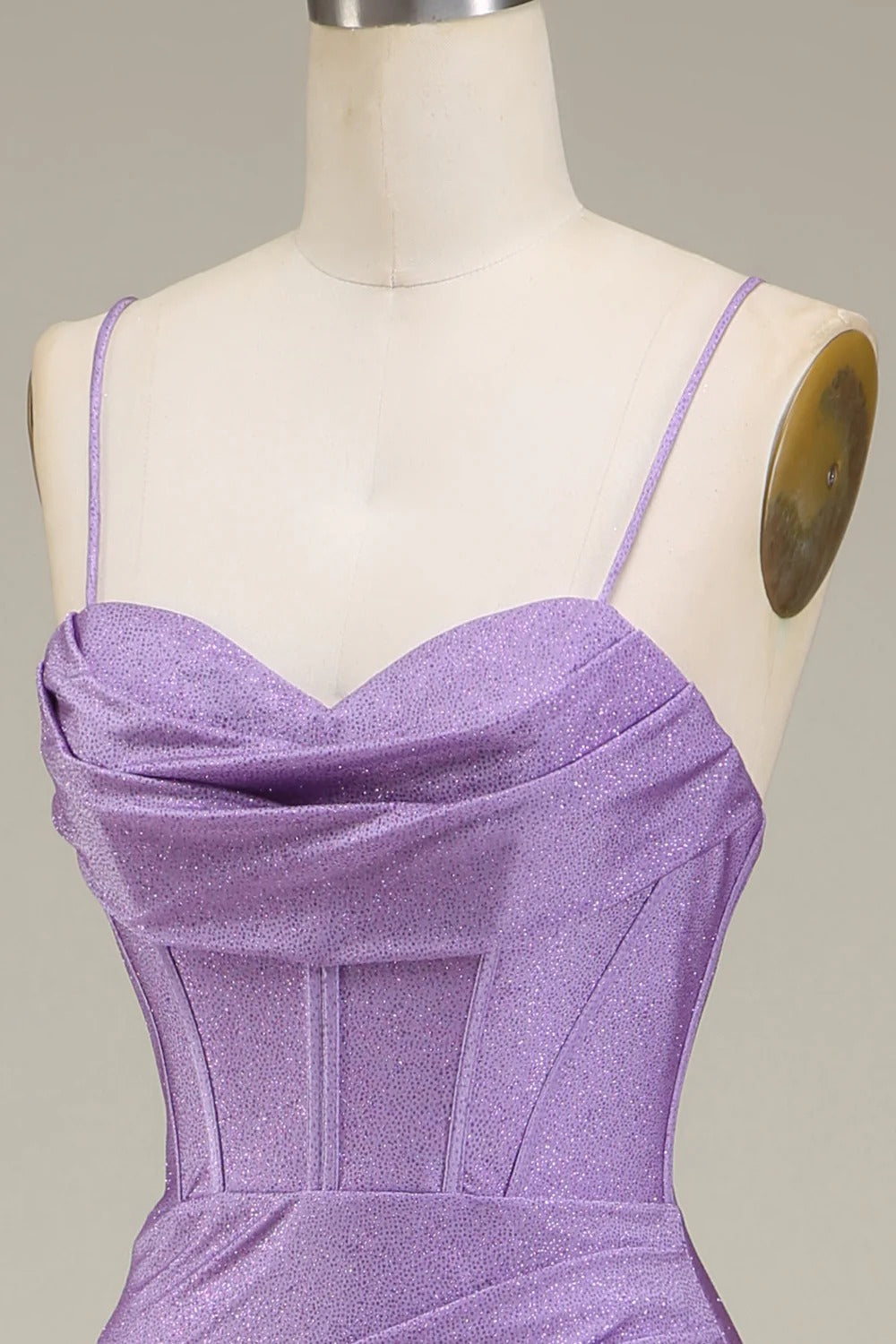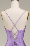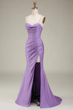 Lilac Mermaid Spaghetti Straps Satin Ball Dress with Corset