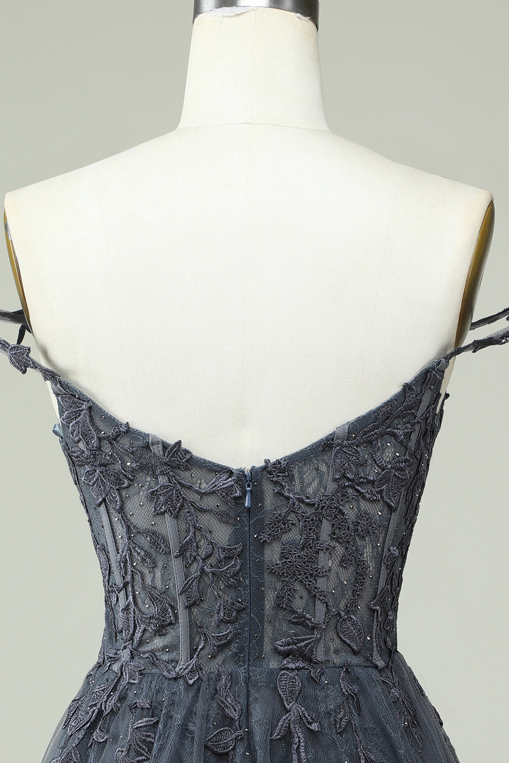 Cute A Line Spaghetti Straps Grey Short Cocktail Dress with Appliques