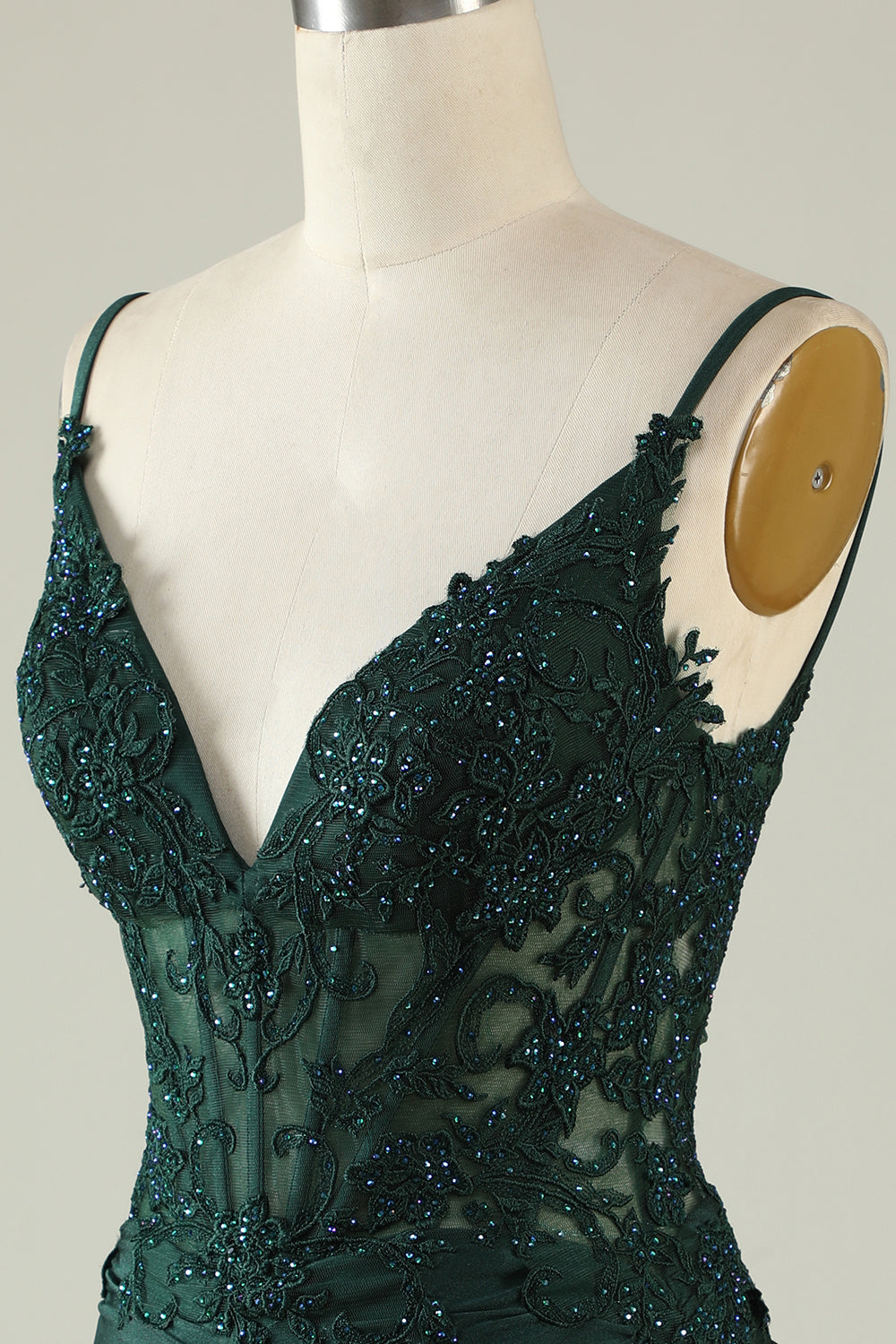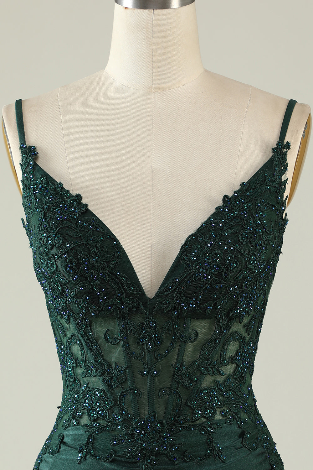 Spaghetti Straps Dark Green Corset Party Dress with Beading