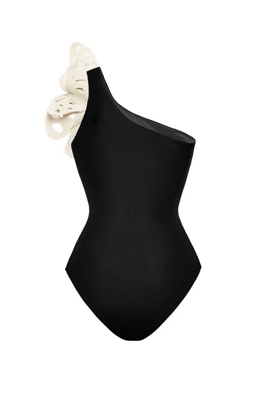 Black 2 Piece One Shoulder Appliqued Butterfly Swimsuit with Beach Dress