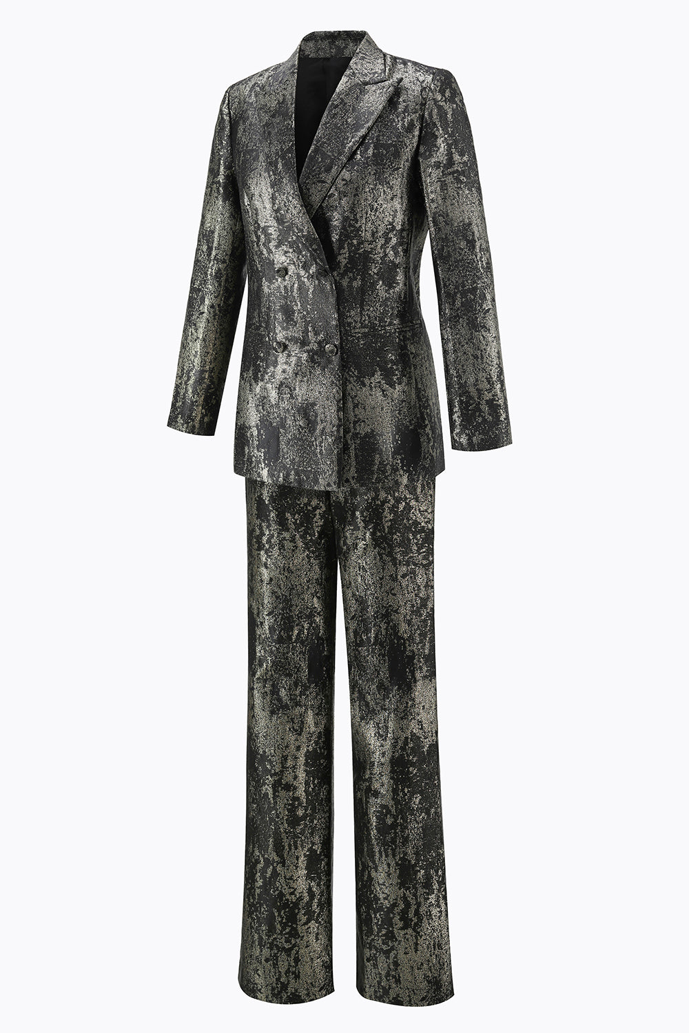 Black and Gold 2 Piece Peak Lapel Double Breasted Women's Prom Suit