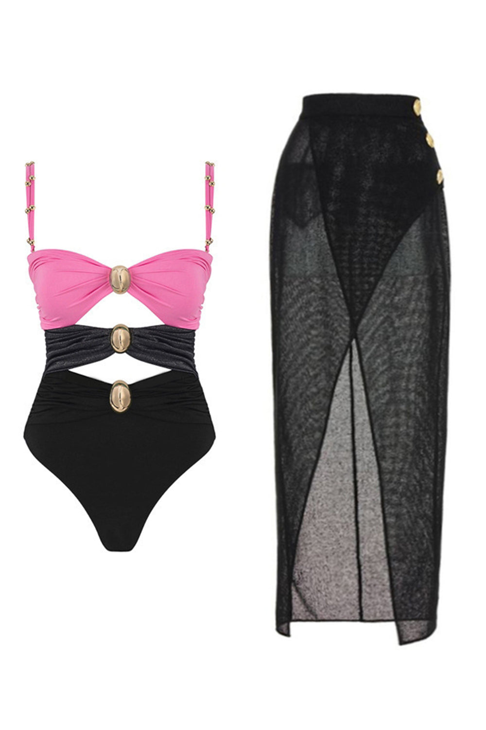 Black Cut Out Spaghetti Straps Swimsuit with Beach Skirt