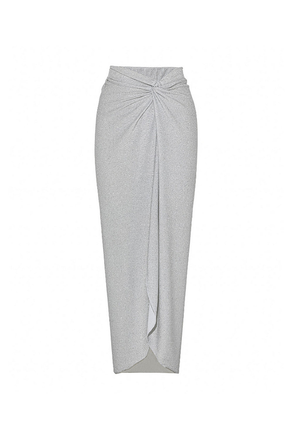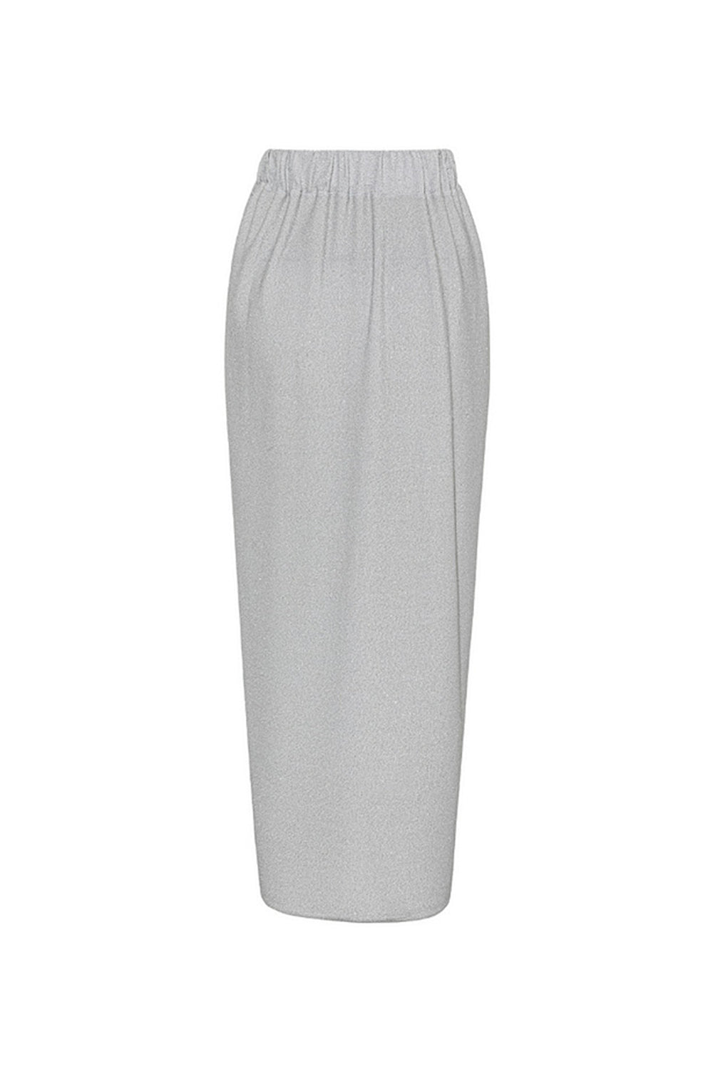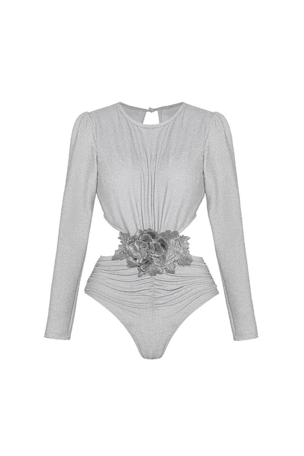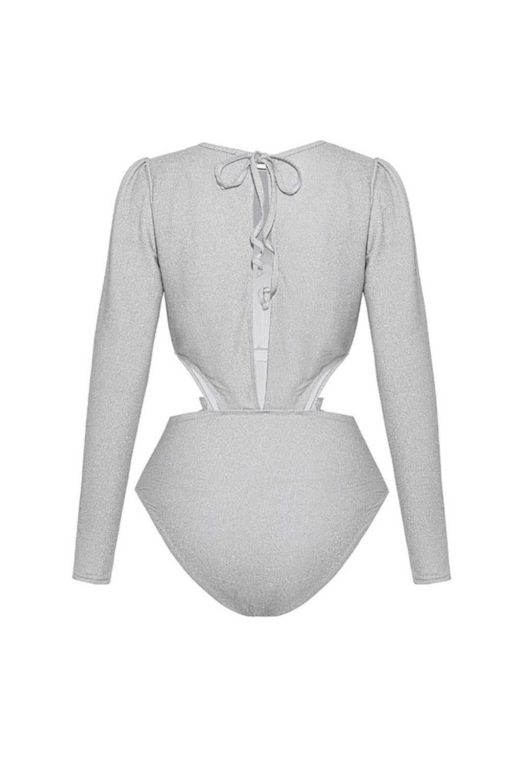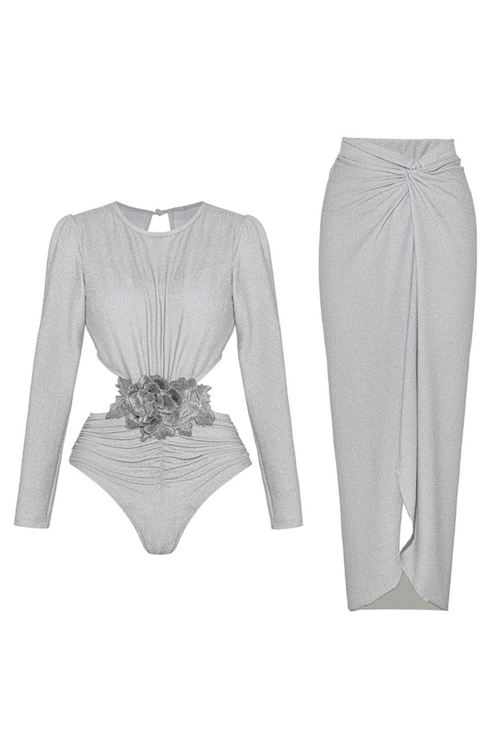 Long Sleeve Silver 2 Piece Swimsuit with Beach Skirt