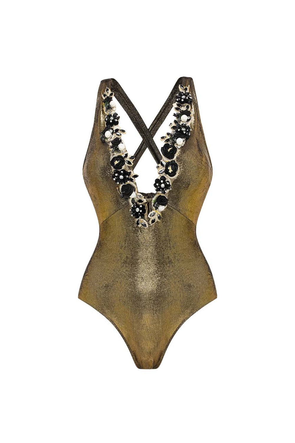 Metallic Golden Appliqued 2 Piece Swimsuit