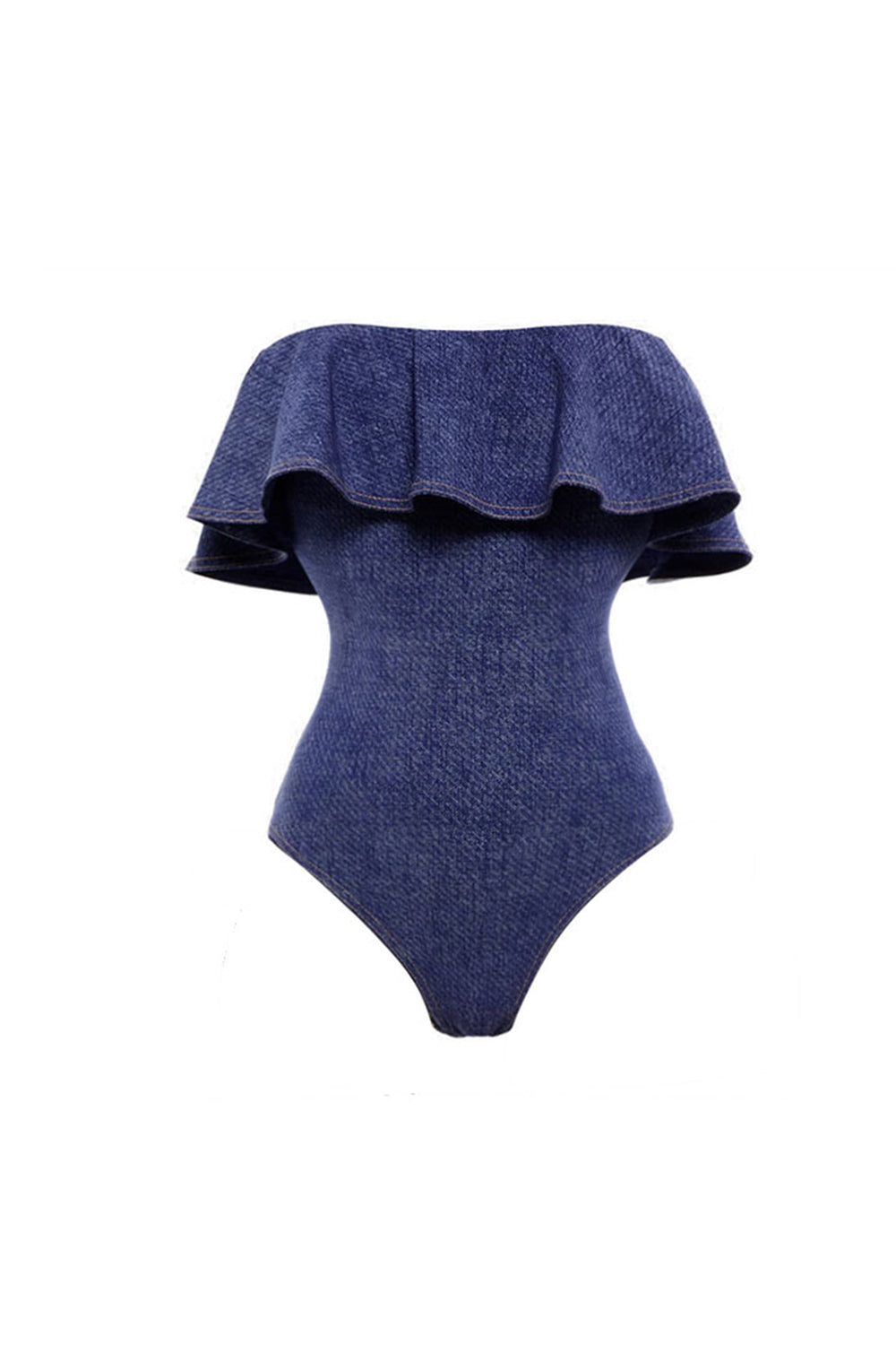 Navy Off The Shoulder 2 Piece Striped Swimsuit with Cover Up