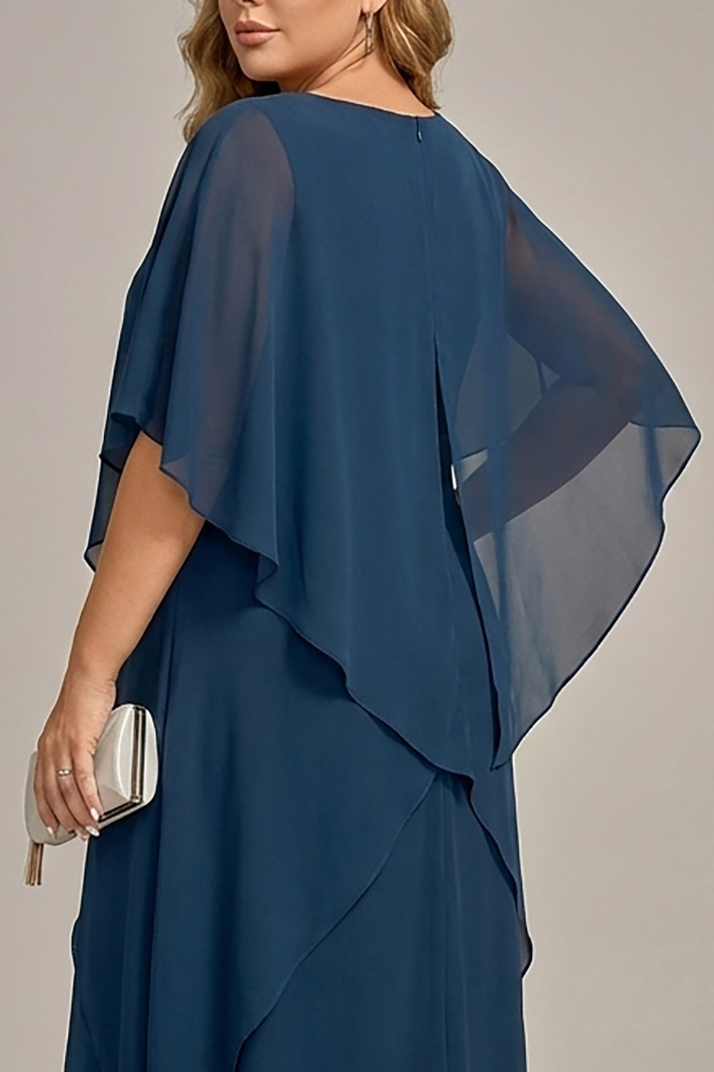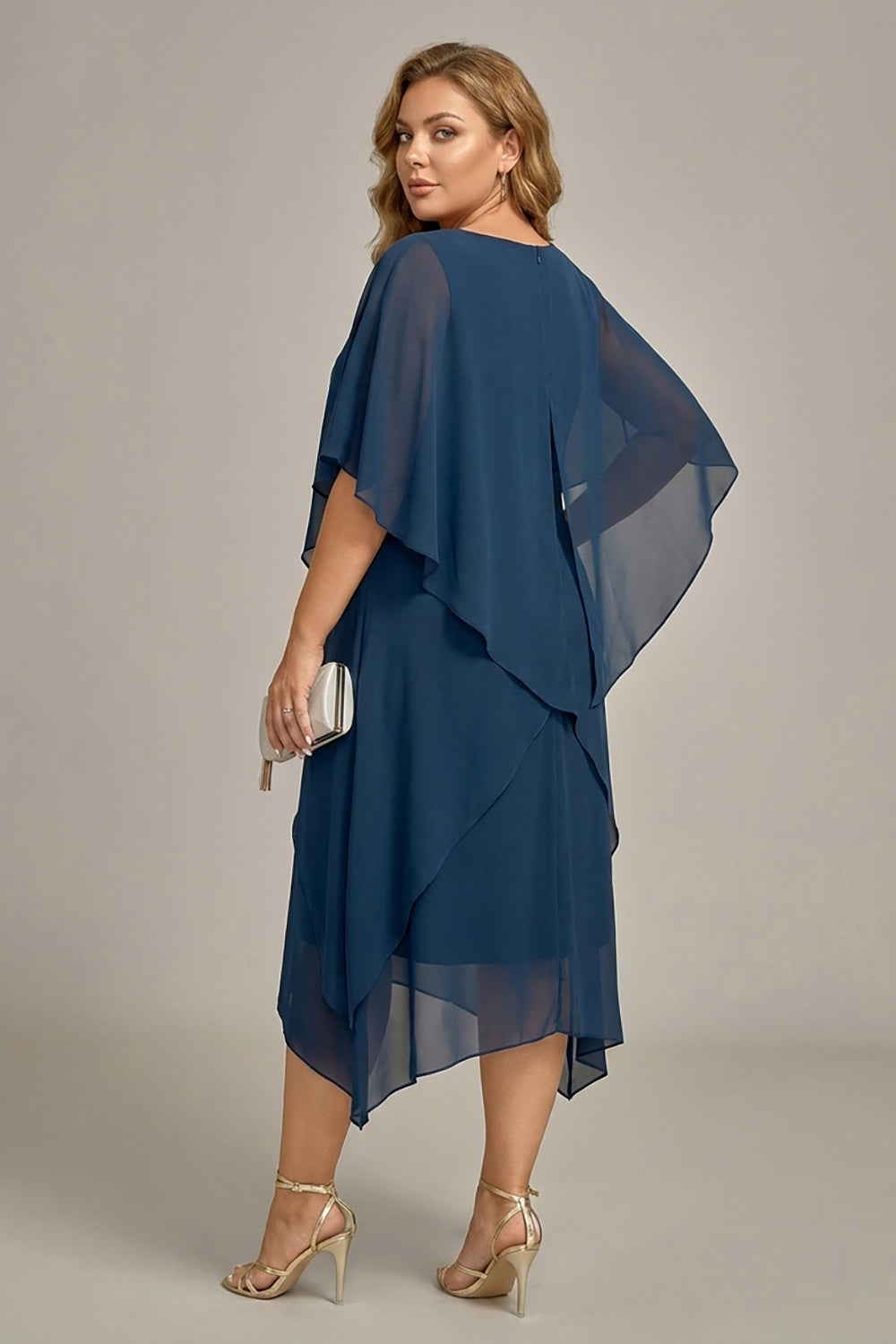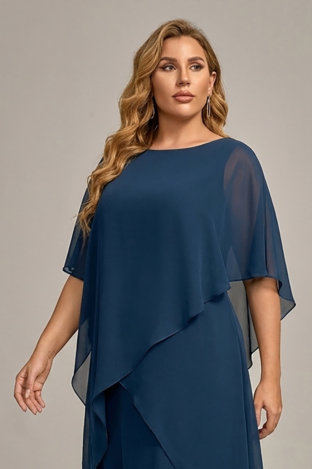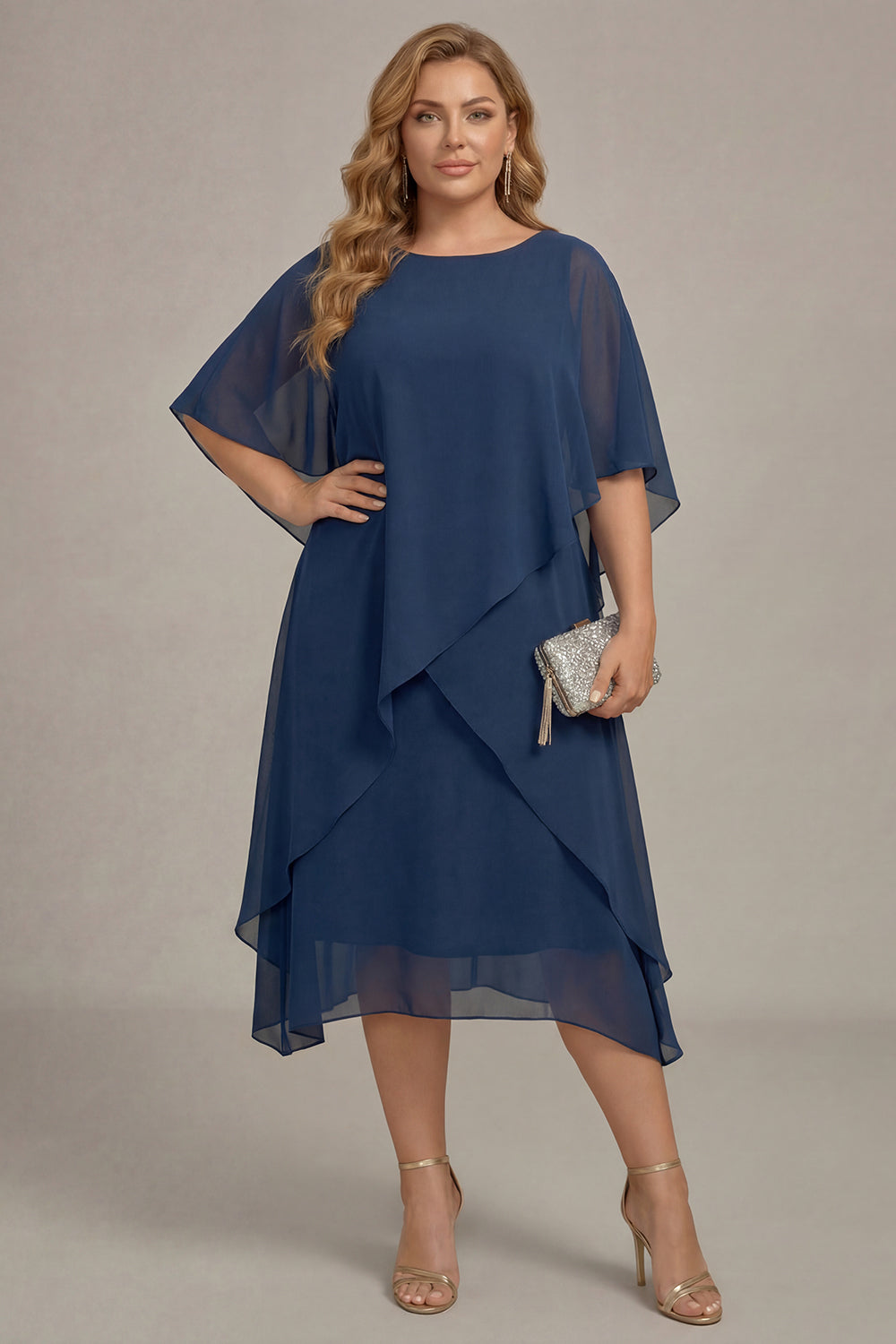 Navy Plus Size Chiffon A-Line Boat Neck Midi Mother of the Bride Dress