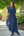 Navy V-neck Mermaid Satin Long Mother of the Bride Dress
