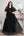 Black A Line Cold Shoulder Printed Floral Long Prom Dress with Slit
